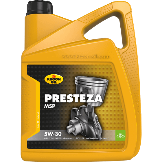 Presteza MSP 5W-30 is een brandstofbesparende synthetische motorolie, speciaal ontwikkeld voor de nieuwste generatie personenwagens die voorzien zijn van een roetfilter en/of een katalysator. Door de speciale Mid-SAPS technieken gaan deze langer mee. Speciaal geselecteerde basisoliën en geavanceerde additieven zijn samengevoegd om de volgende eigenschappen te verkrijgen: