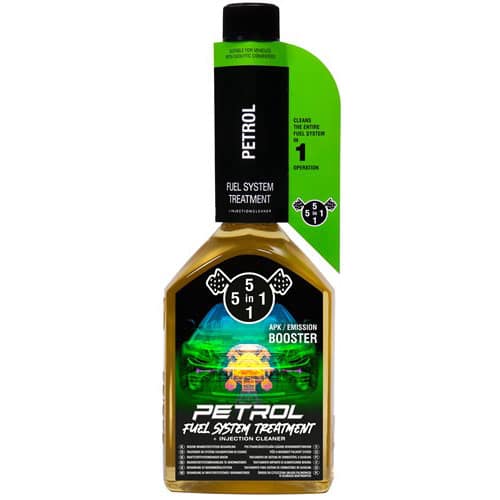 5in1 benzine brandstof systeem reiniger bevat corrosie beschermende eigenschappen die de duurzaamheid van de motor verhoogt, waardoor de levensverwachting van het brandstofsysteem toeneemt. Bij oudere auto’s zal dit product ook de carburateur reinigen. 5in1 benzine brandstofsysteem reiniger is veilig te gebruiken in alle benzinemotoren, ook geschikt voor 2-tact motoren.