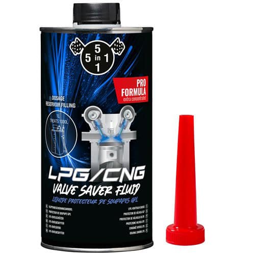 5in1 LPG Valve Saver is een lood vervangend smeermiddel voor de bovenste cilinder. Goed voor 1000 liters 16.9 fl.oz. 5in1 LPG valve saver is een veilig, bewezen, geconcentreerd additief, gemaakt voor het minimaliseren van valve seat recession (VSR) bij LPG, CNG en benzinevoertuigen.