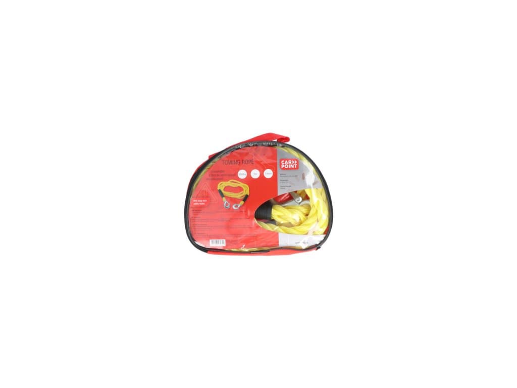 Deze handige Carpoint sleepkabel is geschikt voor het slepen van auto’s met een maximaal gewicht van 5000 KG. De sleepkabel heeft extra sterke veiligheidshaken om de sleepkabel snel en gemakkelijk te bevestigen. De sleepkabel wordt geleverd in een handige tas met rits om de sleepkabel in op te bergen. Specificaties: * Maximaal trekvermogen 5000 kilogram * Lengte 3 meter * Diameter 18mm Tips: * Bevestig beide uiteinden van de sleepkabel aan het daarvoor bestemde afsleeppunt van de auto en niet aan de bumper. Kijk eventueel in het instructieboekje van de auto wat de juiste bevestigingspunten zijn * Sleep geen auto wanneer deze lichten, remmen en stuurinrichting defecten heeft * De sleepkabel dient altijd strak te blijven, anders gaat het slepen heel moeizaam of breekt de sleepkabel. Ook kan de sleepkabel anders op de grond komen met de kans er overheen te rijden. * Het trekkende voertuig altijd goed in de gaten houdt en tijdig inschatten wanneer er geremd moet worden