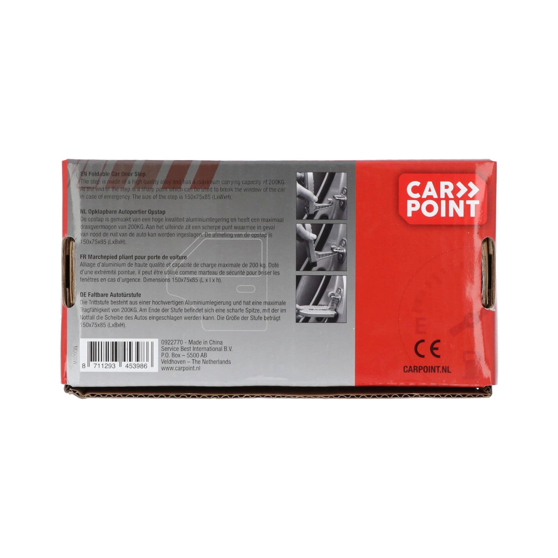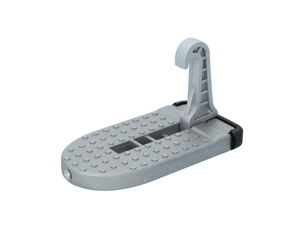 De opklapbare autoportier opstap is de oplossing om hoger te kunnen werken en je snel en gemakkelijk toegang hebt tot het hele dak van de auto. Hierdoor wordt het makkelijker om de dakkoffer te beladen, fietsen op de fietsdrager op het dak te plaatsen of om gewoon om het dak van de auto schoon te maken. De opstap is eenvoudig in het slot oog van de deurstijl van het portier te haken en uit te klappen. De rubberen beschermlaag zorgt dat de deurstijl niet kan beschadigen. De opstap is gemaakt van een hoge kwaliteit aluminiumlegering en heeft een maximaal draagvermogen van 200KG. Aan het uiteinde zit een scherpe punt waarmee in geval van nood de ruit van de auto kan worden ingeslagen.De afmeting van de opstap is 150x75x85 (LxBxH).