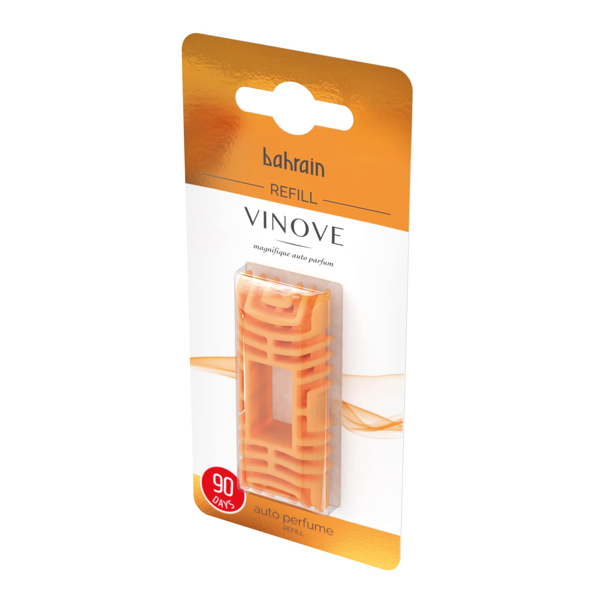 Navulling Vinove luchtverfrisser Bahrein met een geur vol van citrus fruit, groene thee en een sappige citroen.Deze navulling past in alle Vinove Original luchtverfrissers en gaat tot 90 dagen mee.