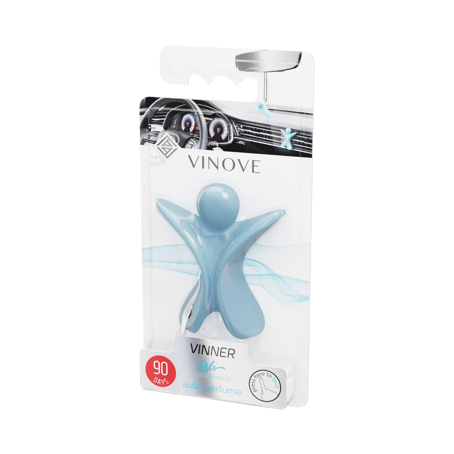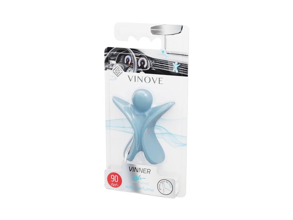 Unieke Vinove Vinner luchtverfrisser Oslo met een krachtige geur sandelhout en labdanum met een vleugje peper en wierrook. Verbeterde formule van polymeer die de geur langer vasthoudt en langere en intensere afgifte van de geur geeft. De luchtverfrisser is in de auto op te hangen aan de binnenspiegel of te plaatsen in het ventilatierooster.