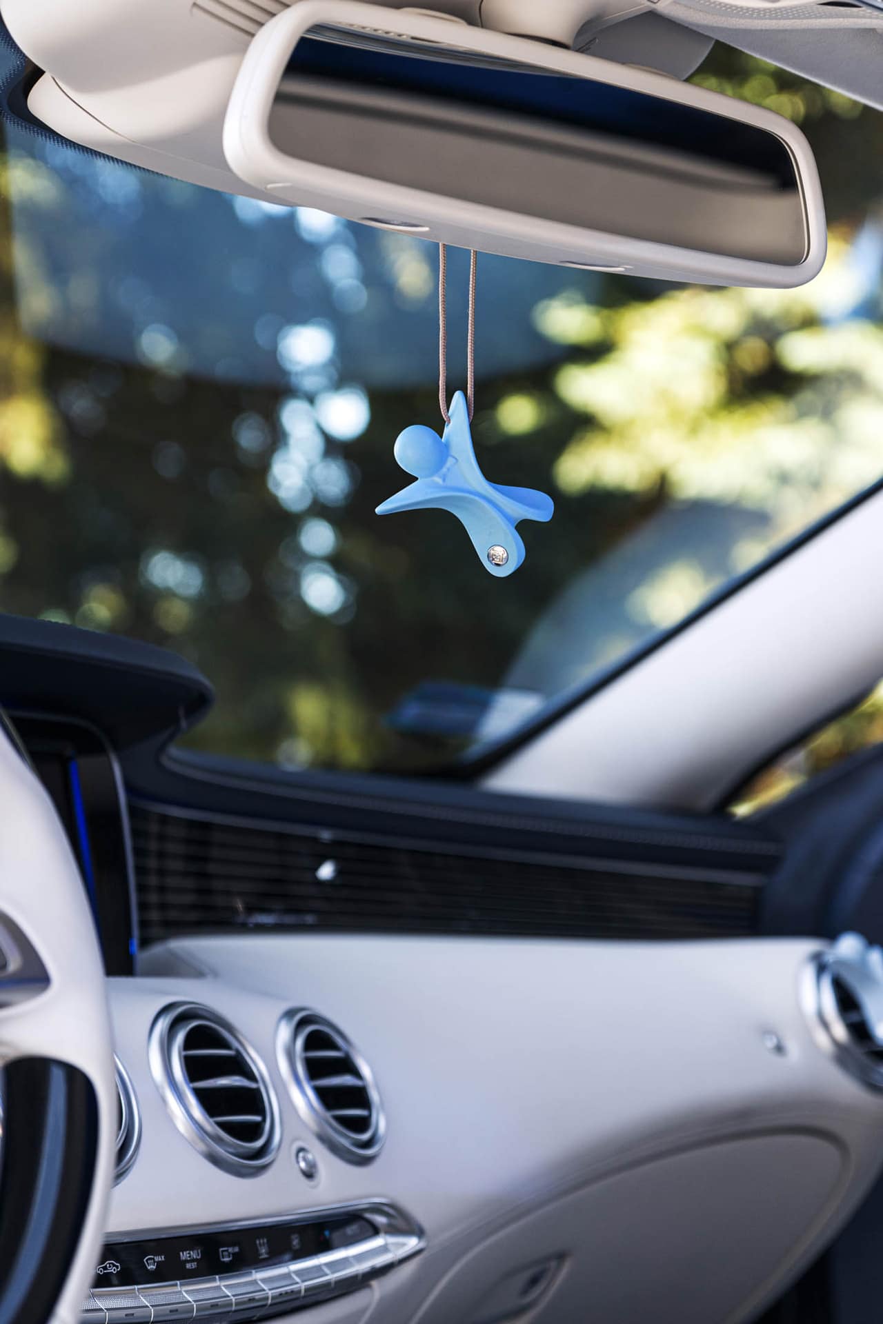 Op te hangen aan een de binnenspiegel in de auto of te plaatsen in het ventilatierooster