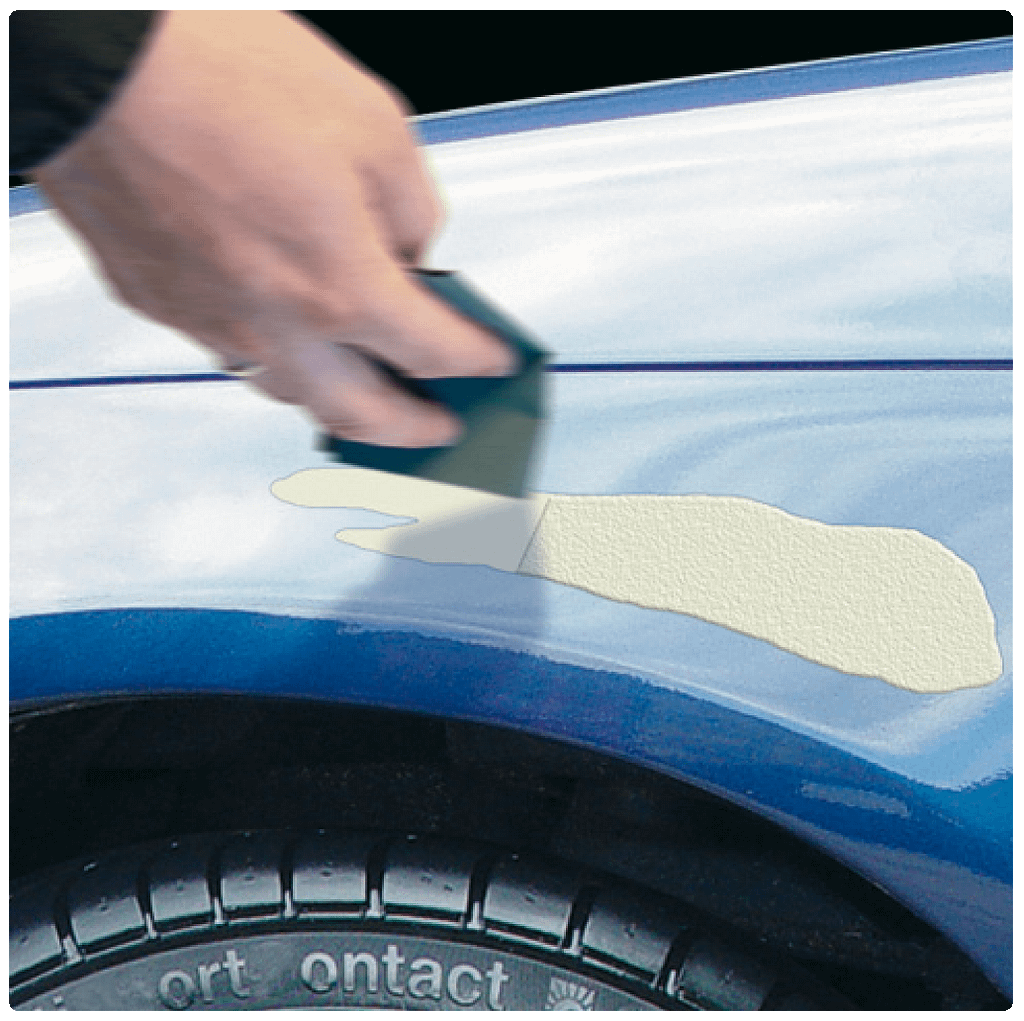U mengt de benodigde hoeveelheid Motip Fijnplamuur met de harder. Dit brengt u aan in de laagdikte die u wenst. Na uitharding schuurt u dit met schuurpapier (korrel 600)